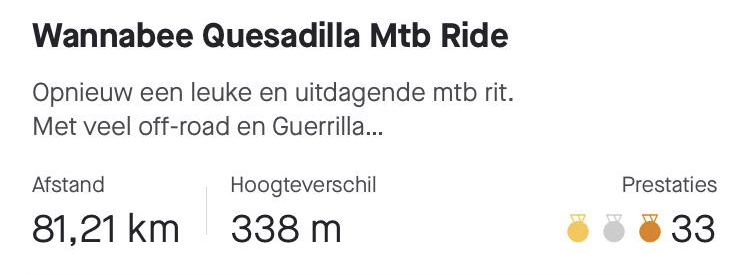 Ook feedback in de vorm van een reactie is meer dan welkom, op deze manier kunnen we onze organisatie bijsturen of behouden wat goed is. De "Quesadilla ride" is immers een rit van mountainbikers voor mountainbikers